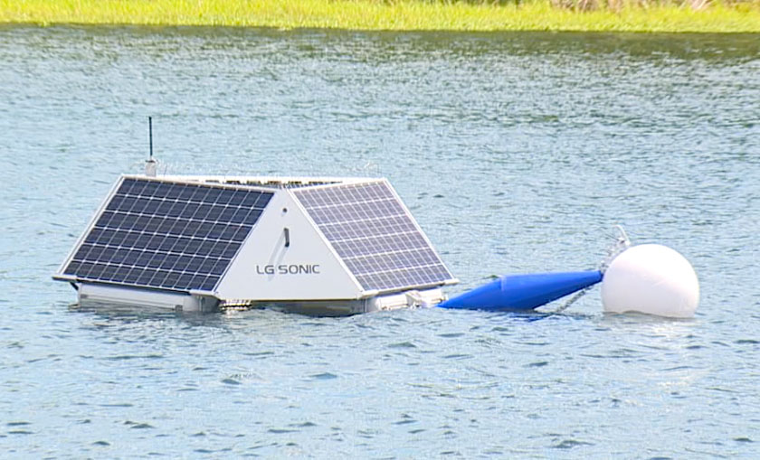 Bury Lake has two ultrasonic devices to control and monitor blue green algae. This is an environmentally-friendly alternative to chemical usage and harmless to the aquatic ecosystem.